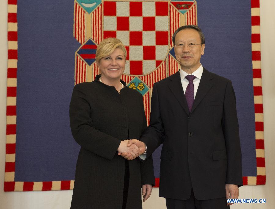 Загреб, 14 ноября /Синьхуа/ -- Находящийся в Хорватии с визитом член Секретариата ЦК КПК, заместитель председателя Всекитайского комитета Народного политического консультативного совета Китая /ВК НПКСК/ Ду Цинлинь в пятницу по отдельности провел встречи с президентом Хорватии Колиндой Грабар-Китарович и спикером парламента Йосипом Леко.