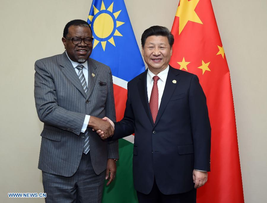 Йоханнесбург, 4 декабря /Синьхуа/ -- Председатель КНР Си Цзиньпин сегодня здесь встретился с президентом Намибии Хаге Гейнгобом.