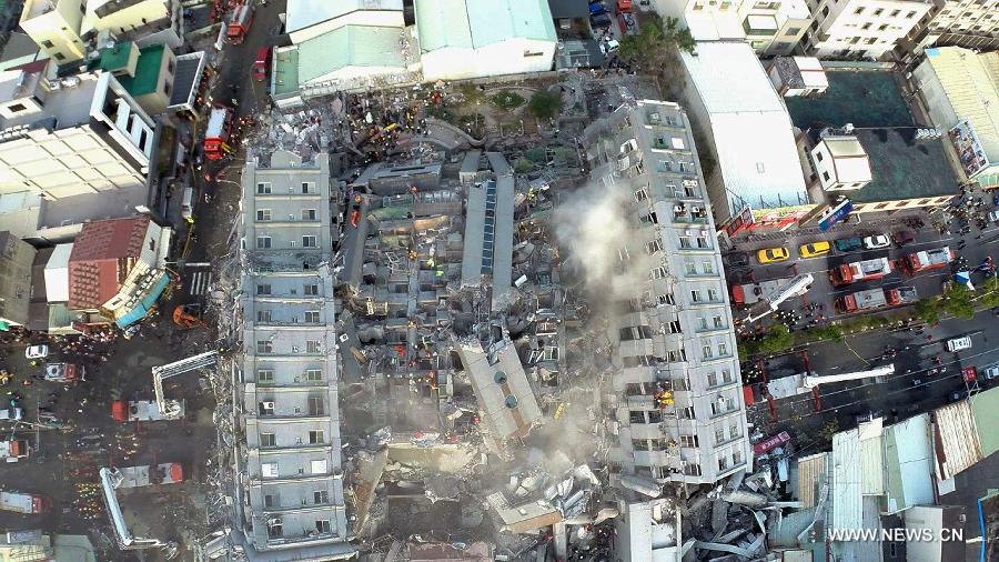 Тайнань, 6 февраля /Синьхуа/ -- В городе Тайнань при землетрясении обрушилось высотное здание. Без вести пропавшими считаются 172 человека, находящиеся в здании, еще у 10 человек не обнаружены признаки жизни. (Синьхуа)