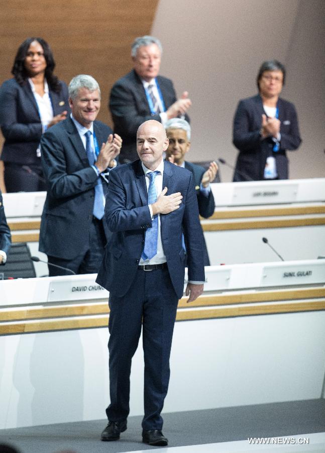 Цюрих, 26 февраля /Синьхуа/ -- Генеральный секретарь УЕФА Джанни Инфантино сегодня был избран президентом Международной федерации футбола /ФИФА/. (Синьхуа/Сюй Цзиньцюань)
