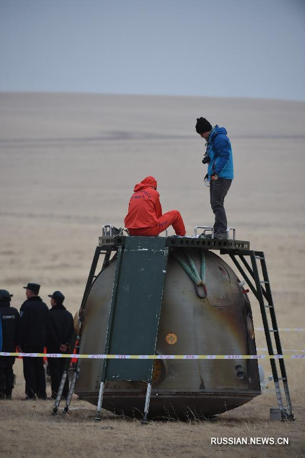 Спускаемая капсула космического корабля "Шэньчжоу-11" успешно приземлилась на территории Внутренней Монголии. (Синьхуа)