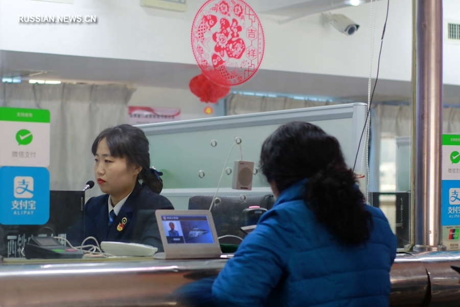 На фото: 14 февраля, пассажиры покупают билет в вокзале Сианя. (Синьхуа/Хуан Хэ)