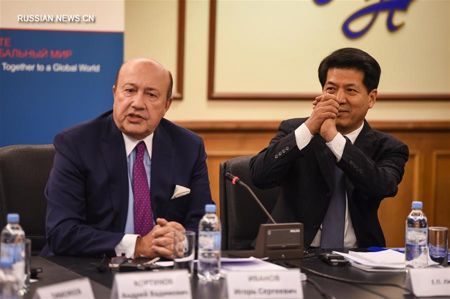 Москва, 12 декабря /Синьхуа/ -- Посол КНР в России Ли Хуэй и президент Российского совета по международным делам Игорь Иванов сегодня в Москве приняли участие в круглом столе на тему "Итоги и перспективы развития российско-китайских отношений в свете 40-летия политики реформ и открытости КНР". Фотографии Синьхуа/Евгений Синицын