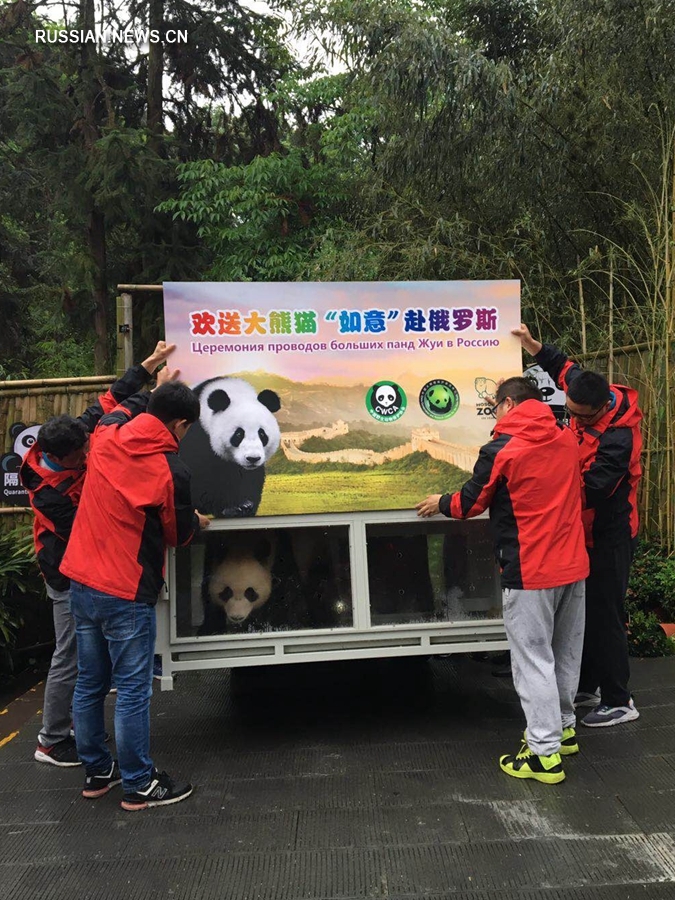 "Я уже пообщалась с ними, и могу сказать, что они меня уже полюбили, так что они не будут чувствовать себя одинокими, - рассказала она. - Кроме того, в Китай была отправлена группа работников Московского зоопарка - весь отдел зоологов из 6 человек и 2 ветеринара - для того, чтобы они обучались и работали с этими пандами в течение месяца, таким образом, животные их будут узнавать, не бояться и чувствовать себя комфортно. Более того, эта группа работников уже научилась давать команды, подзывать, а панды их уже слушались. Они знают как общаться с ними".