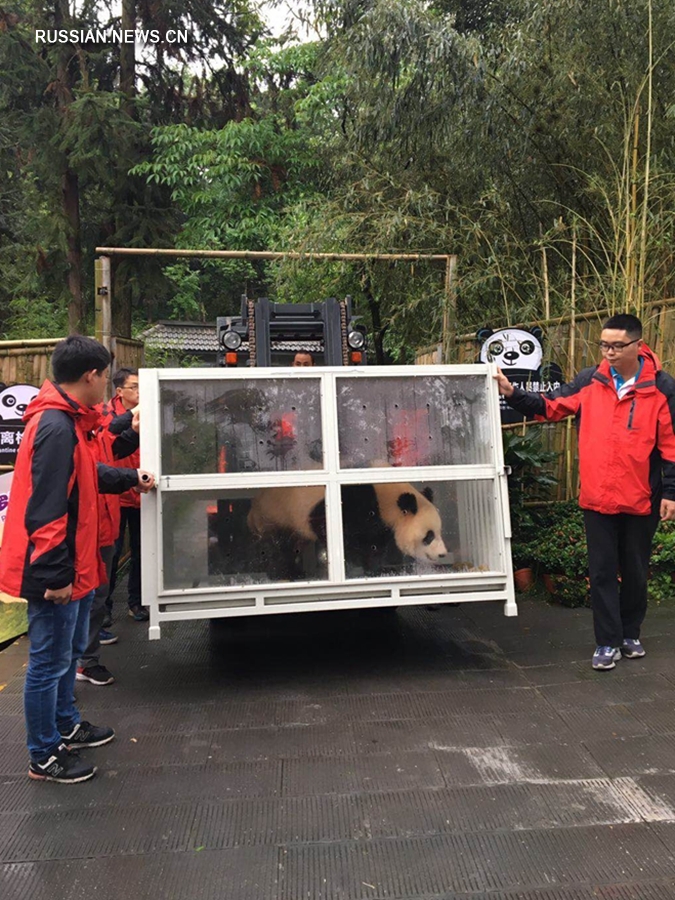 По сообщению, самолет с китайскими большими пандами по кличкам "Жуи" и "Диндин" вылетел в понедельник из города Чэнду /административный центр пров. Сычуань/ в Москву.