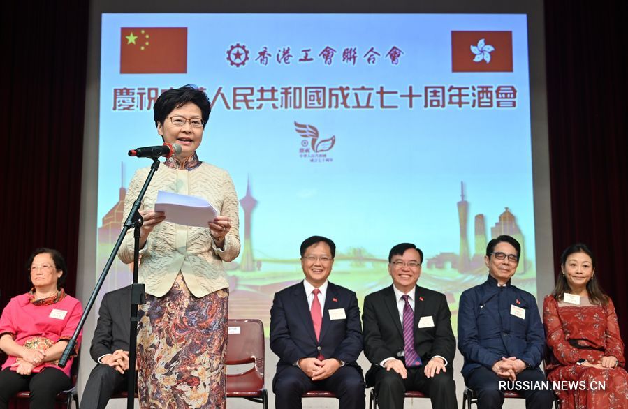 Сянган, 22 сентября /Синьхуа/ -- Глава администрации САР Сянган Линь-Чжэн Юээ сегодня во время банкета, устроенного Федерацией профсоюзов Сянгана по случаю празднования 70-летия образования КНР, заявила, что продолжающееся насилие оказывает огромное влияние на работу и жизнь "подрабатывающих молодых людей". Администрация САР Сянган непременно сделает все возможное для того, чтобы остановить насилие, обуздать хаос, обеспечить общественный порядок и гарантировать работникам заработок.