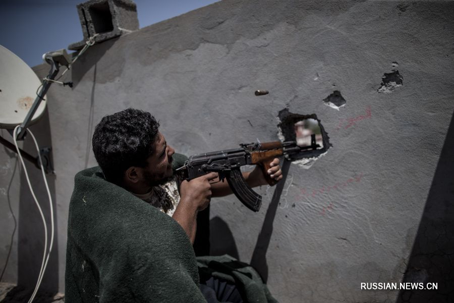 На фотографии -- член вооруженных сил правительства национального единства Ливии ведет бой с войсками ЛНА. /Фотографии: Синьхуа/
