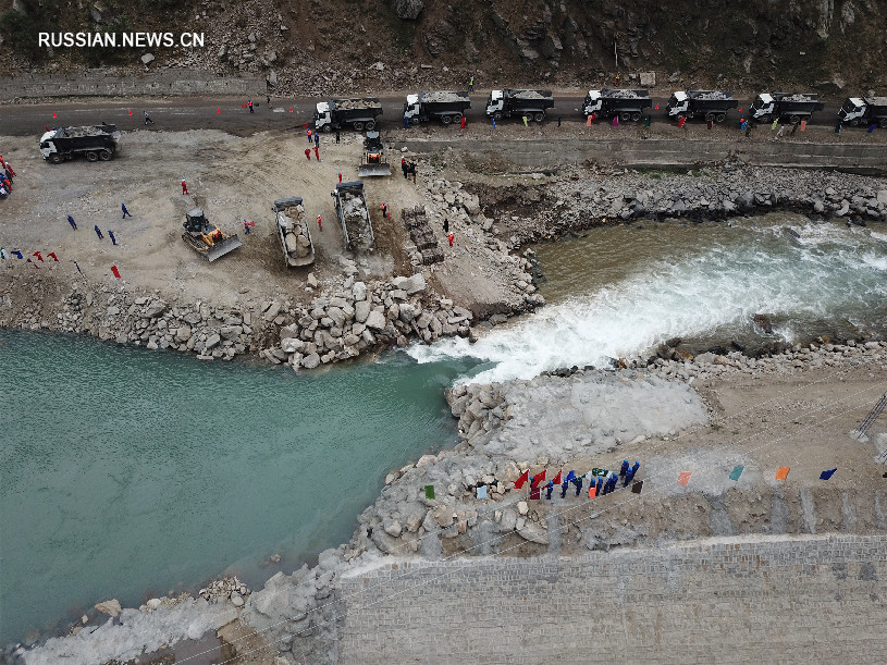 Сегодня построенная китайской компание China Gezhouba Group Company Ltd. плотина успешно осуществила перекрытие реки./Фотографии Синьхуа/