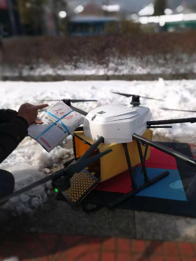 Дрон доставляет газеты для местных жителей уезда Аньцзи пров. Чжэцзян.