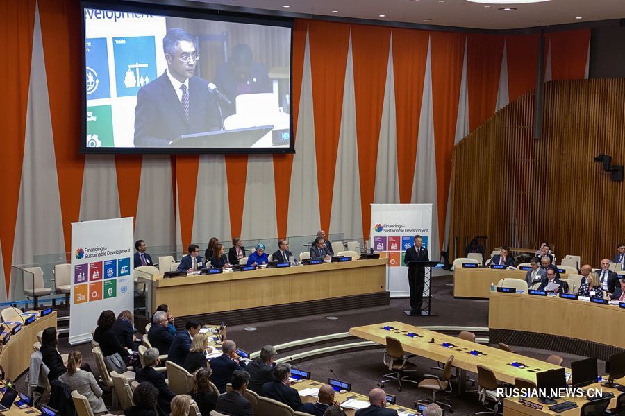 16 октября заседание, посвященное созданию Альянса глобальных инвесторов для устойчивого развития, прошло в штаб-квартире ООН в Нью-Йорке. /Фото: Синьхуа/