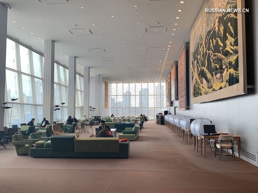 На фото, сделанном 12 марта, зал для отдыха представителей в штаб-квартире ООН в Нью-Йорке. /Фото: Синьхуа/