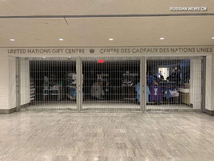 На фото, сделанном 12 марта, центр подарков с закрытыми дверями в штаб-квартире ООН в Нью-Йорке. /Фото: Синьхуа/