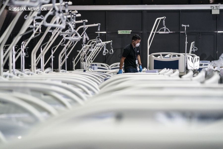 24 марта, Сантьяго. Рабочий устанавливает койки во временной больнице, в которую переоборудован конгресс-центр "Эспасио Риеско". /Фото: Синьхуа/