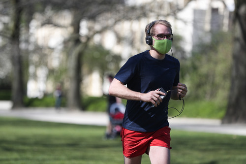 6 апреля, Брюссель, Бельгия. Мужчина в защитной маске бежит в парке. /Фото: Синьхуа/