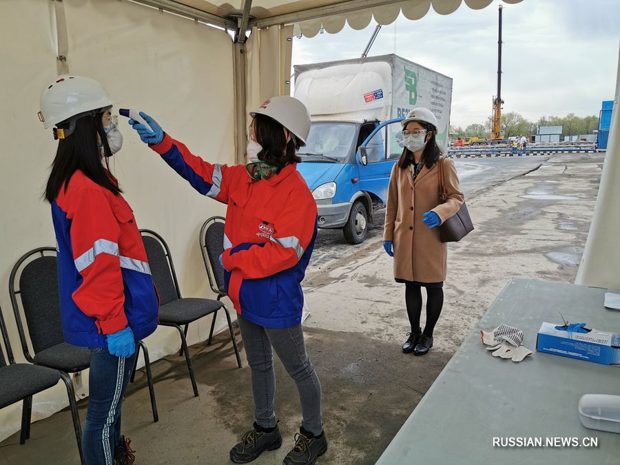5 мая работникам проверяют температуру в Москве. /Фото: Синьхуа/