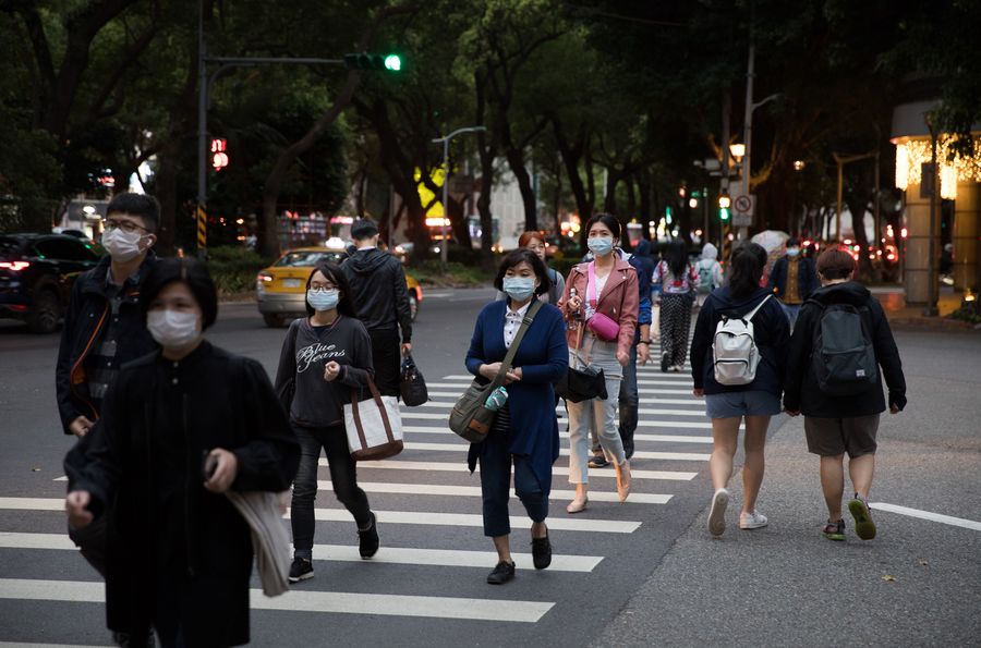30 марта 2020 года, люди в защитных масках идут по улице в тайваньском городе Тайбэй. /Фото: Синьхуа/