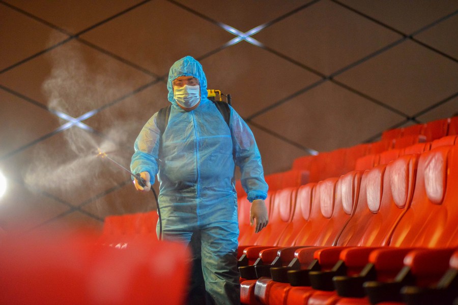 26 июня, Куала-Лумпур. Сотрудник кинотеатра дезинфицирует кинозал. /Фото: Синьхуа/