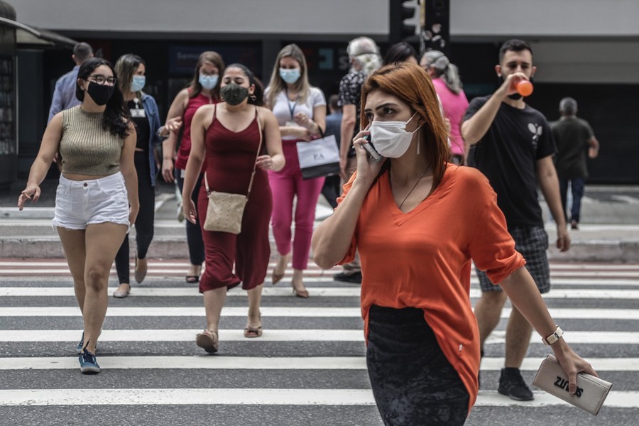 11 января, Сан-Паулу. Люди в масках на улице крупнейшего города Бразилии. /Фото: Синьхуа/
