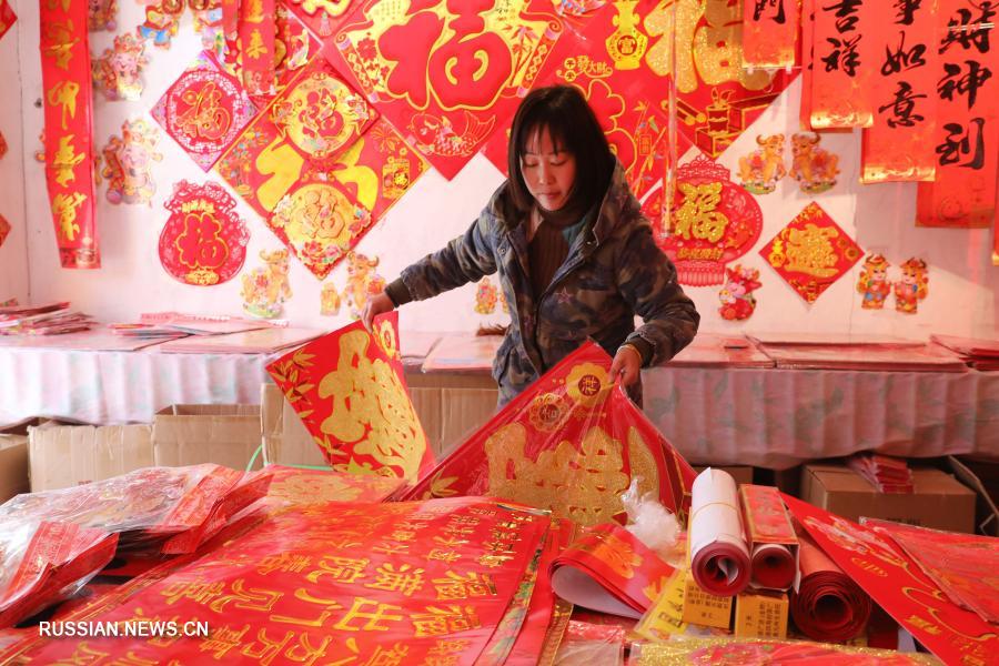 Цзяоцзо /пров. Хэнань/, 7 февраля /Синьхуа/ -- В преддверии "Чуньцзе", традиционного китайского Нового года по лунному календарю, жители уезда Вэньсянь в городском округе Цзяоцзо /провинция Хэнань, Центральный Китай/ отправляются на местные рынки, чтобы как следует подготовиться к торжеству. Красные фонарики, парные надписи, бумажные узоры на окна и узелковые украшения служат неотъемлемыми атрибутами праздника. Фотографии Синьхуа/Сюй Хунсин