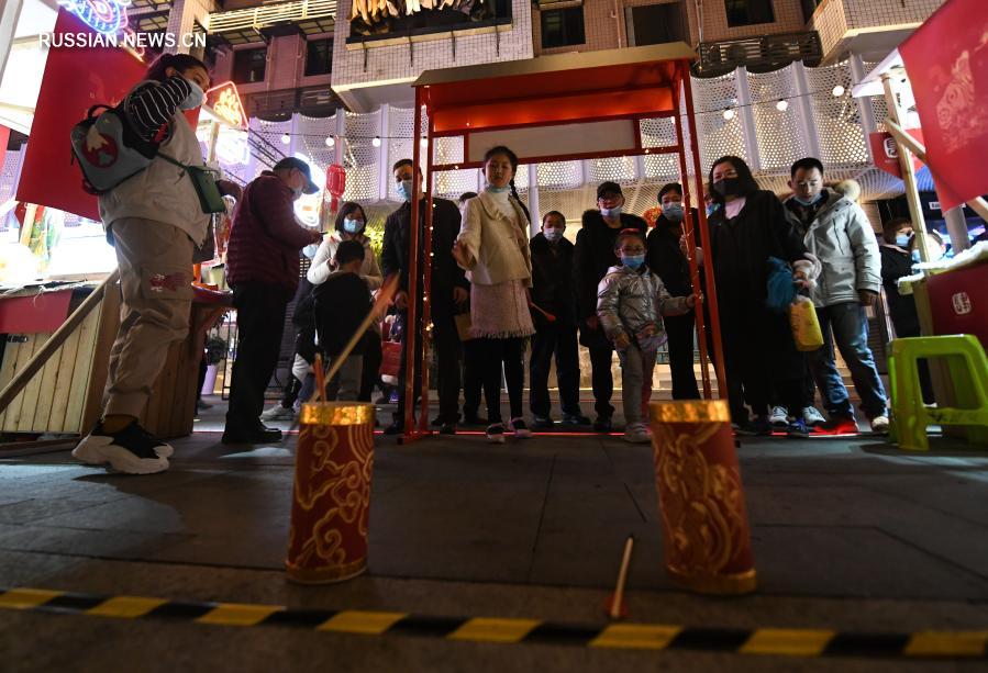 Чэнду, 8 февраля /Синьхуа/ -- Фестиваль "Великолепная парча -- Последний месяц года в городе -- 2021" официально стартовал накануне вечером в районе Чэнхуа города Чэнду /провинция Сычуань, Юго-Западный Китай/. Туристы и торговцы в традиционных нарядах привлекают внимание горожан, приходящих за предпраздничными покупками. Фотографии Синьхуа/Ван Си