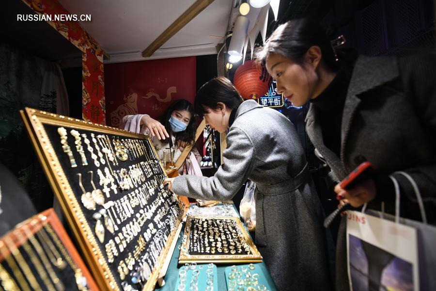 Чэнду, 8 февраля /Синьхуа/ -- Фестиваль "Великолепная парча -- Последний месяц года в городе -- 2021" официально стартовал накануне вечером в районе Чэнхуа города Чэнду /провинция Сычуань, Юго-Западный Китай/. Туристы и торговцы в традиционных нарядах привлекают внимание горожан, приходящих за предпраздничными покупками. Фотографии Синьхуа/Ван Си