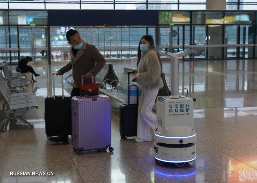 Наньчан, 8 февраля /Синьхуа/ -- В этом году период "чуньюнь", сезонная миграция населения в период до, во время и после праздника Весны /чуньцзе/, стал особым в связи с введенным режимом профилактики и контроля новой коронавирусной инфекции /COVID-19/. Персонал железнодорожного вокзала “Наньчан Западный”, со своей стороны, тоже усилил противоэпидемические меры. В частности, на территории вокзала были установлены автоматы по продаже защитных масок, автоматические обеззараживатели воздуха, а также приняты другие меры с тем, чтобы обеспечить чистую и безопасную среду для пассажиров. Фотографии Синьхуа/Чжоу Ми
