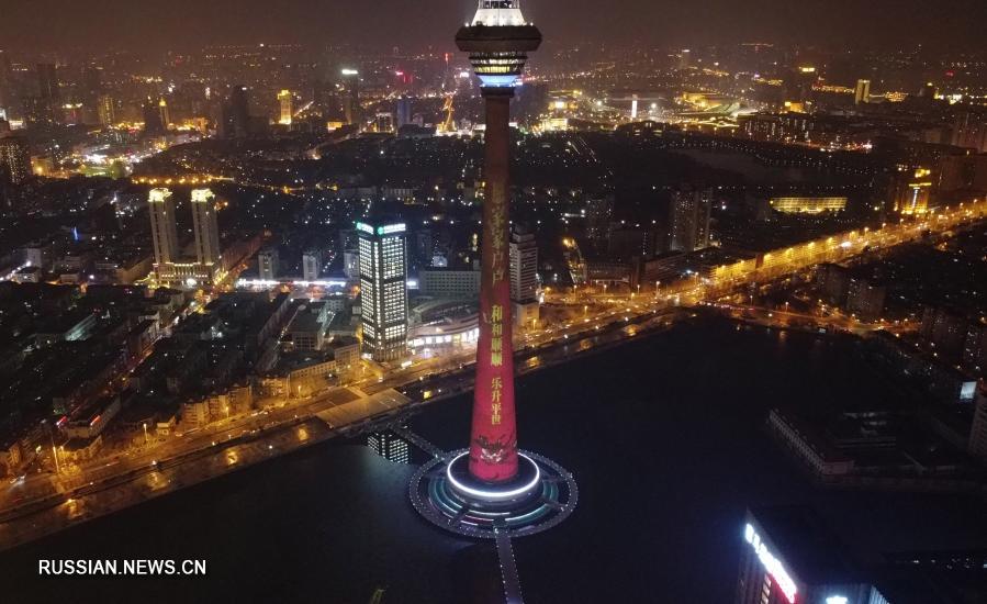 Тяньцзинь, 10 февраля /Синьхуа/ -- 9 февраля вечером на Тяньцзиньской телебашне /Тяньцзинь, Северный Китай/ состоялось красочное световое шоу под названием "Откуда бы вы ни были, сегодня ночью вы все -- тяньцзиньцы". Фотографии Синьхуа/Чжао Цзышо