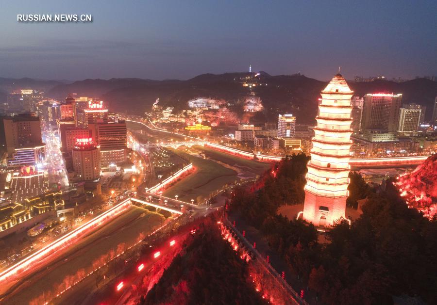 Праздничная подсветка горы Баоташань по случаю "Чуньцзе"