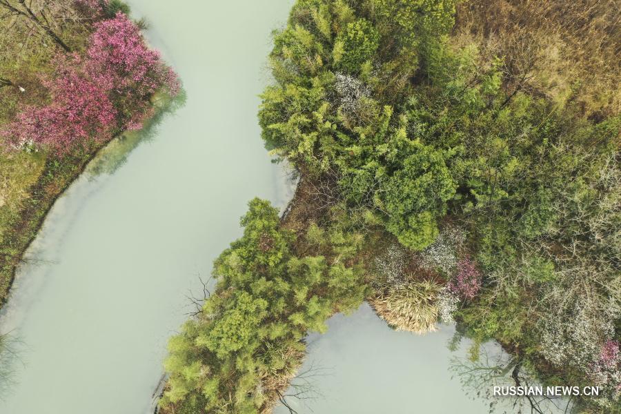 Цветение сливы на заболоченных землях Сиси в Ханчжоу