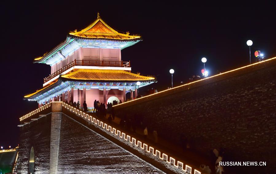 Шицзячжуан, 17 февраля /Синьхуа/ -- Во время каникул по случаю праздника Весны яркие огни ночного древнего городка Чжэндин пров. Хэбэй на севере Китая привлекают многочисленных местных жителей и туристов из других уголков страны, которые приехали сюда, чтобы насладиться древностью этого городка и атмосферой праздника.