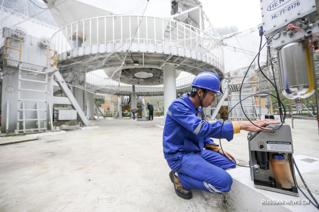 Уезд Пинтан /пров. Гуйчжоу/, 28 марта /Синьхуа/ -- Бригада специалистов сегодня провела регулярное техническое обслуживание сферического радиотелескопа с апертурой 500 м /Five-hundred-meter Aperture Spherical Telescop, FAST/, установленного в уезде Пинтан провинции Гуйчжоу /Юго-Западный Китай/. Полный "медосмотр" и сеанс "оздоровительной гимнастики" для "небесного ока Китая", как окрестили этот гигантский радиотелескоп, должны обеспечить безопасность его работы. FAST используется с 25 сентября 2016 года, а 11 января 2020 года он был официально введен в эксплуатацию после государственной приемочной проверки. "Небесное око Китая" на сегодняшний день является самым большим и самым чувствительным радиотелескопом в мире с самым передовым набором комплексных характеристик. Этот аппарат значительно расширил видимый человечеством горизонт Вселенной.