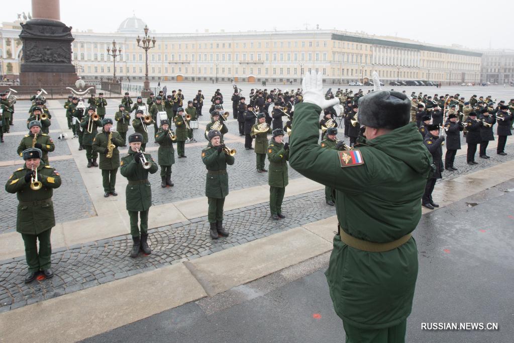 Санкт-Петербург, 9 апреля /Синьхуа/ -- На Дворцовой площади в Санкт-Петербурге сводный военный оркестр Западного военного округа 8 апреля провел репетицию парада в честь 76-й годовщины Победы в Великой Отечественной войне.