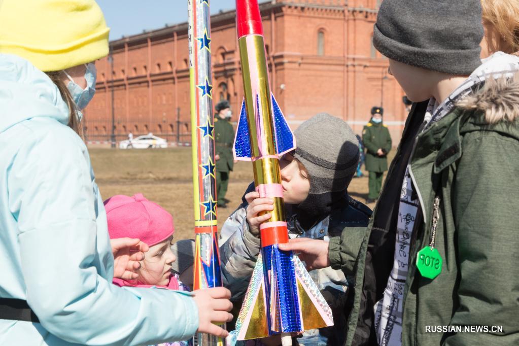 Санкт-Петербург, 12 апреля /Синьхуа/ -- Любители ракетно-космического моделирования сегодня в Петропавловской крепости Санкт-Петербурга провели показательные старты моделей ракет в честь 60-летия со дня первого полета в космос советского космонавта Юрия Гагарина.
