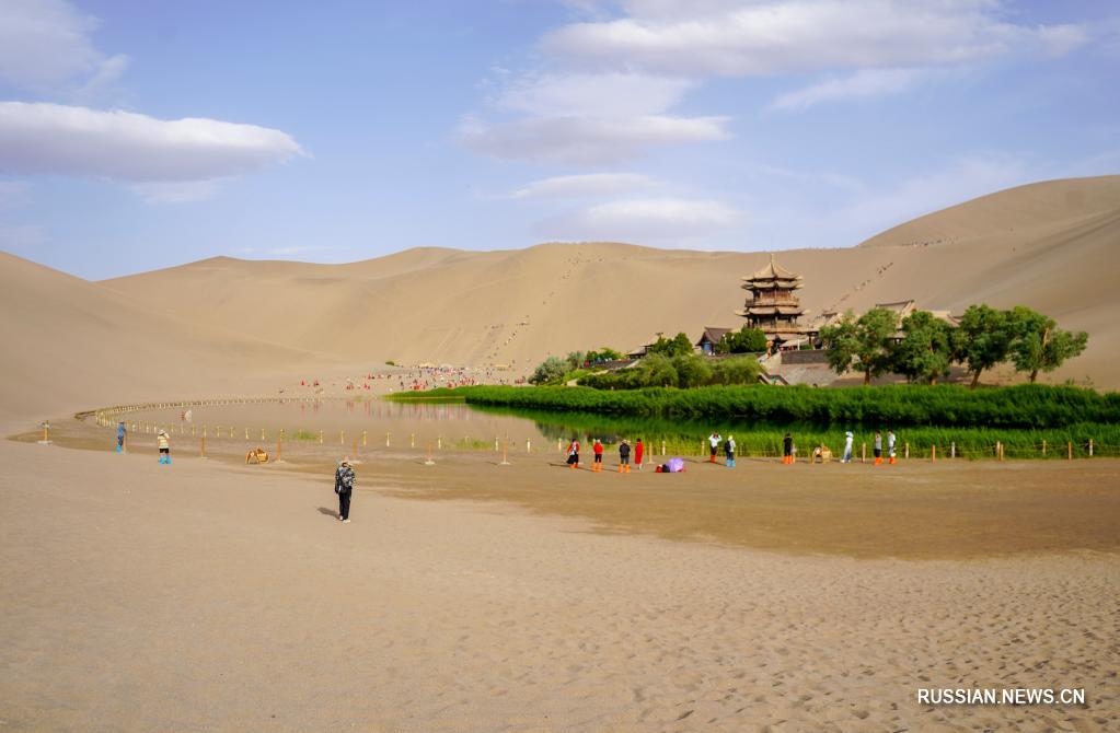 Дуньхуан /пров. Ганьсу/, 30 мая /Синьхуа/ -- На снимке: прекрасный пейзаж в туристической зоне озера Юэяцюань на территории г. Дуньхуан пров. Ганьсу на северо-западе Китая.