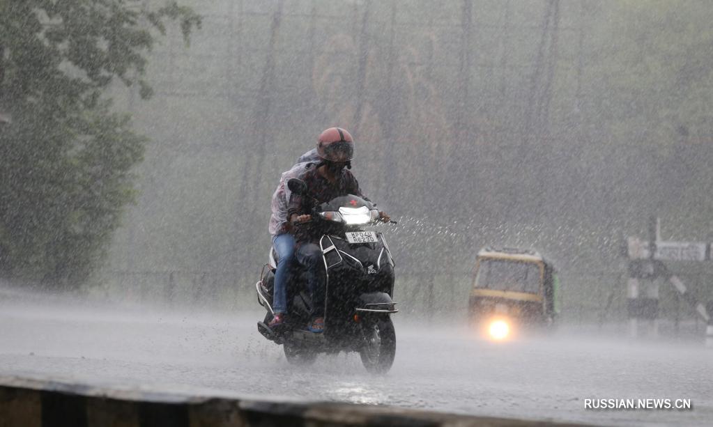 Нью-Дели, 23 июня /Синьхуа/ -- Сезон дождей в Индии длится с июня по сентябрь, в этот период люди передвигаются по улицам вброд.