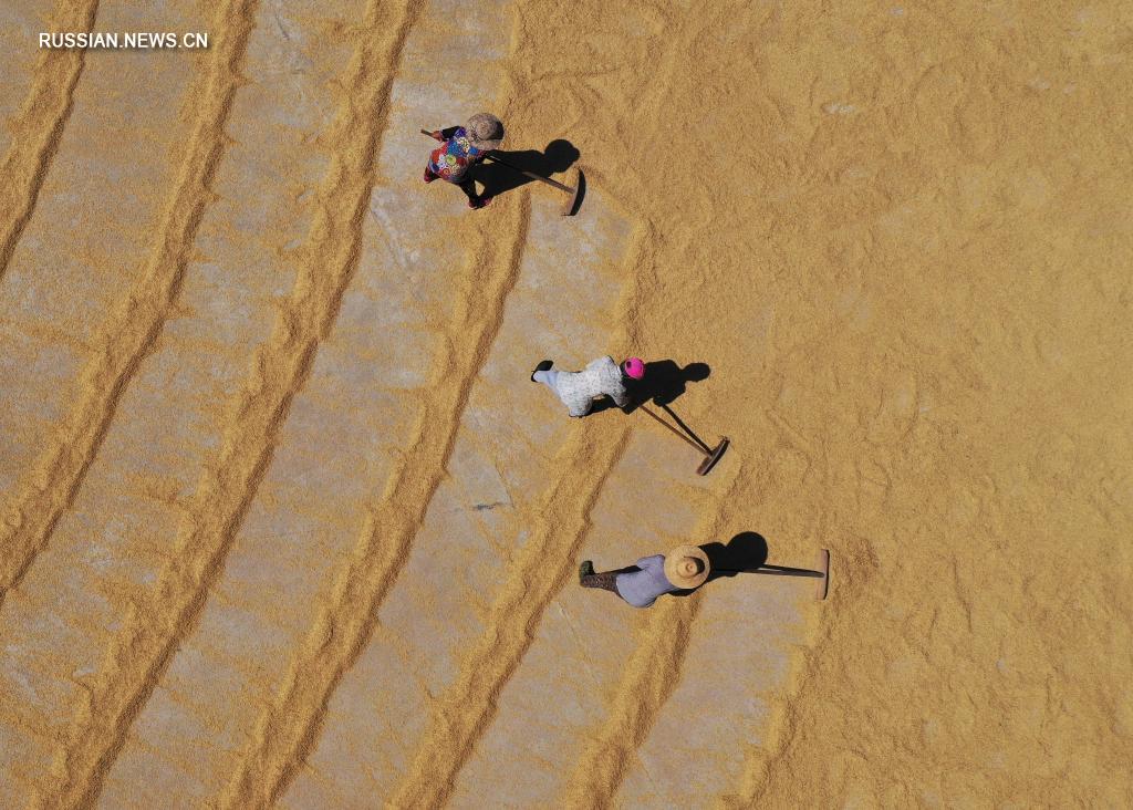 Чжанцзяцзе /пров. Хунань/, 30 августа /Синьхуа/ -- В районе Улинъюань города Чжанцзяцзе /пров. Хунань, Центральный Китай/ наступил сезон сбора урожая риса. В эти дни местные рисоводы заняты просушкой риса на солнце.