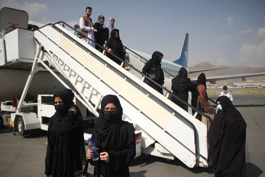 20 сентября, Кабул. Пассажиры выходят из самолета в международном аэропорту столицы Афганистана. /Фото: Синьхуа/