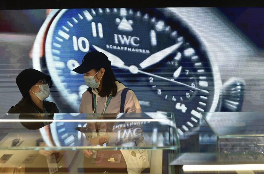 6 ноября 2021 года, посетительницы павильона часов во время 4-й Китайской международной импортной выставки /CIIE/ в Шанхае. /Фото: Синьхуа/