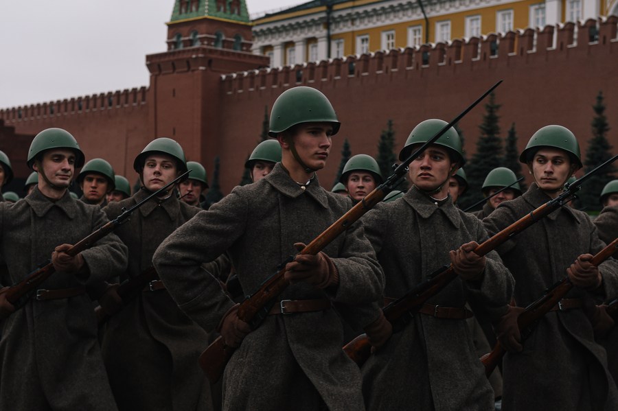 7 ноября 2019 года, Москва. Марш, посвященный 78-летию парада на Красной площади 7 ноября 1941 года. /Фото: Синьхуа/