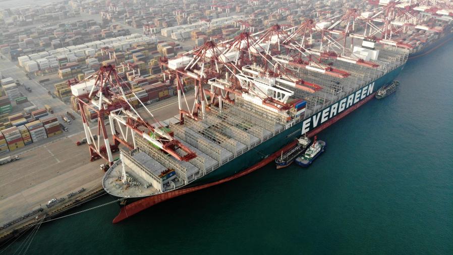 Контейнеровоз Ever Given отремонтирован в Циндао. /Фото: Синьхуа/