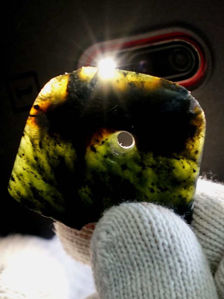 Указанный предмет искусства по форме и структуре очень похож на аксессуар к алебарде, ранее найденный в гробнице времен культуры Хуншань. Это, по мнению Чжан Хая, в основном свидетельствует о тесных контактах культур Яншао и Хуншань. Впрочем, такое взаимодействие, возможно, было ограничено лишь высшими сферами.