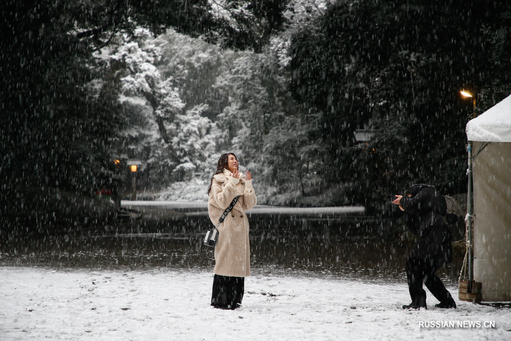 6 января 2022 года, снежный пейзаж в Мэйдзи-Дзингу, Токио, Япония /Фото: Синьхуа/