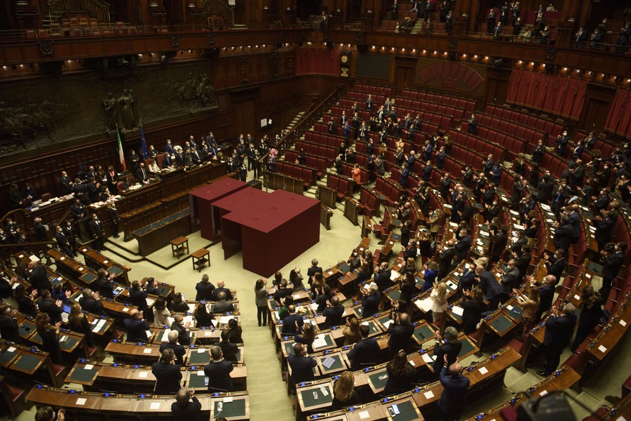 29 января, Рим. Итальянские парламентарии аплодируют переизбранию президента Серджо Маттареллы. /Фото: Синьхуа/