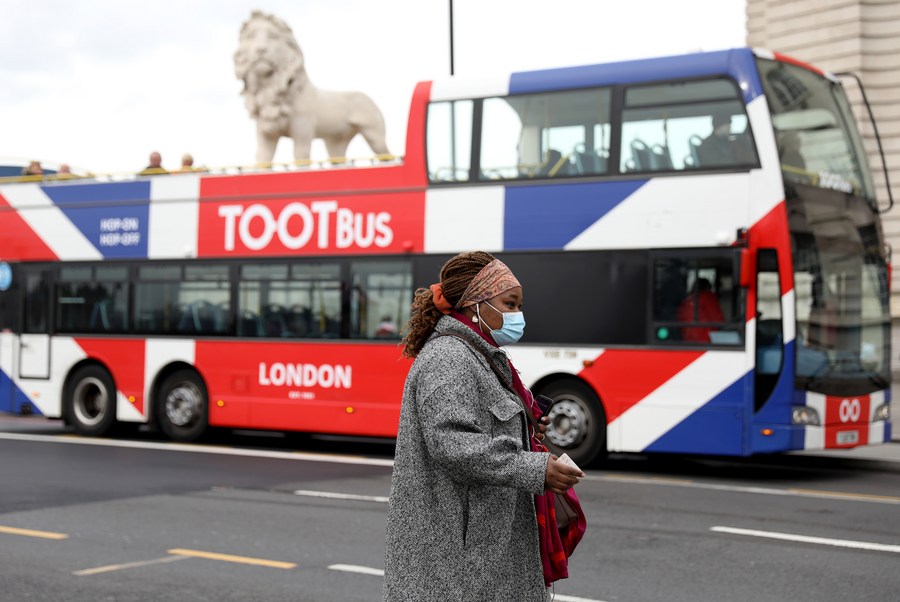 10 февраля, Лондон. Женщина в маске идет по улице. /Фото: Синьхуа/