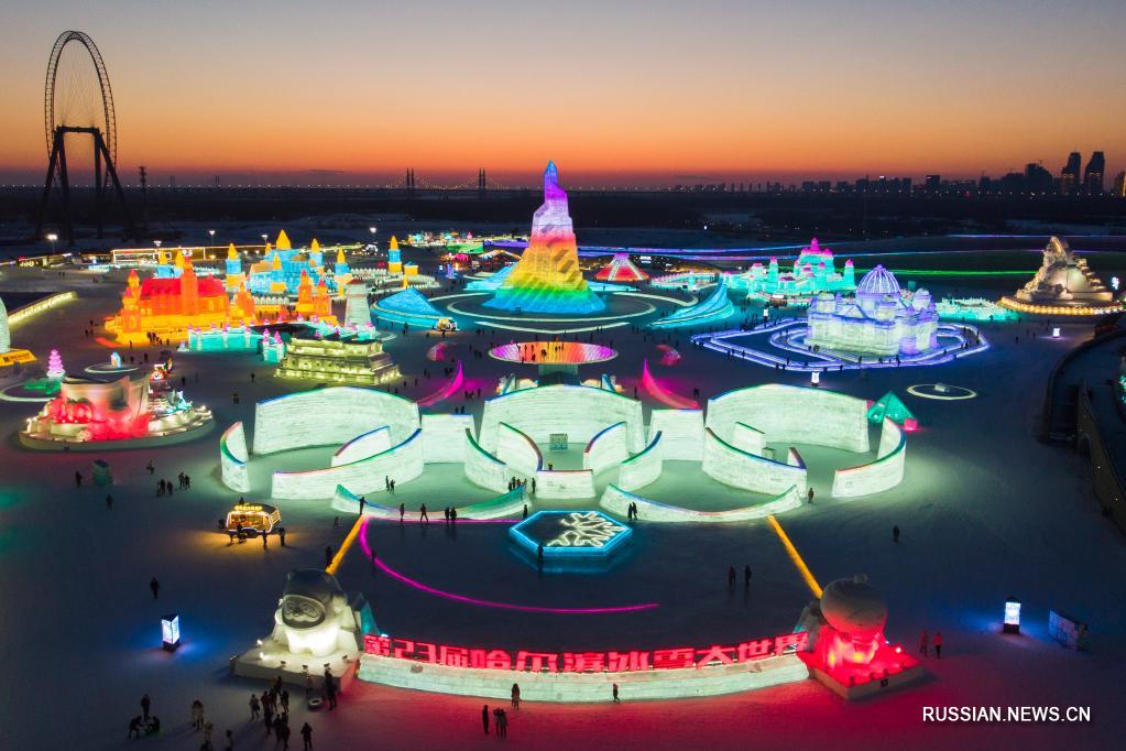 На фото -- 27 февраля 2022 года, туристы посещают Харбинский ледяной и снежный мир в Харбине /провинция Хэйлунцзян, северо-восточный Китай/. 23-й Харбинский ледяной и снежный мир закрылся в тот же день. (Фото Синьхуа)