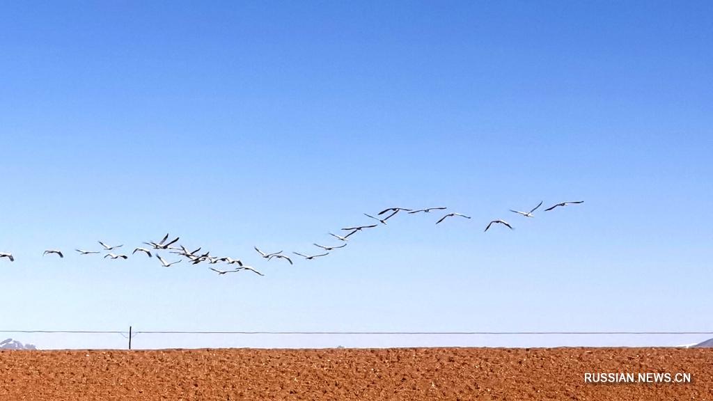 Мадо /пров. Цинхай/, 22 марта /Синьхуа/ -- На днях в районе истока реки Хуанхэ, расположенного в уезде Мадо провинции Цинхай /Северо-Западный Китай/ появились журавли-красавки, которые способны преодолевать вершину Джомолунгма.