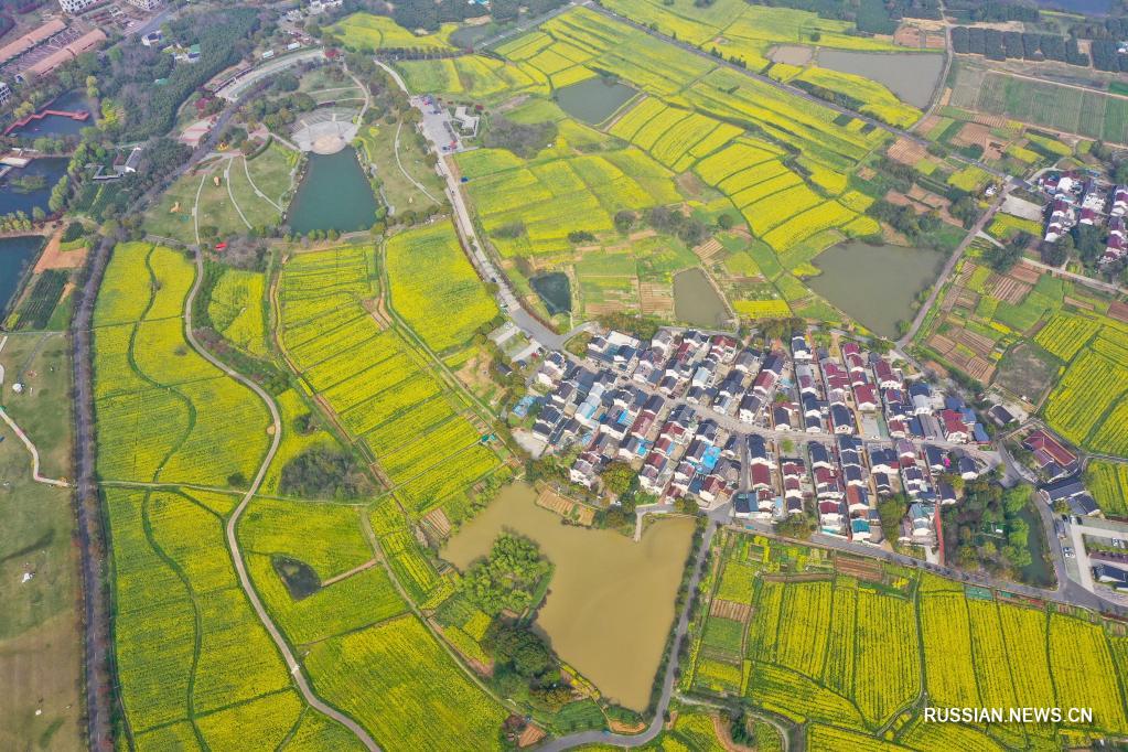 На фото от 28 марта -- пейзажный вид поля капусты в районе Гаочунь города Нанкин /провинция Цзянсу, Восточный Китай/. (Синьхуа/Цзи Чунпэн)