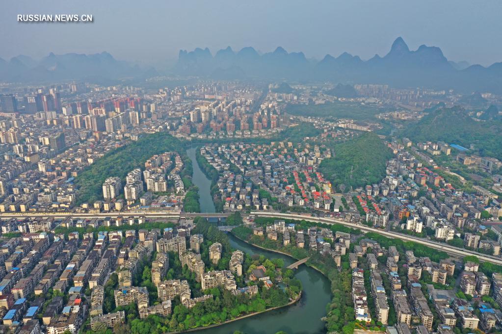 Гуйлинь, 11 апреля /Синьхуа/ -- В разгар весны природа ожила в горах г. Гуйлиня /Гуанси-Чжуанский автономный район на юге Китая/, зазеленели травы и на деревьях распустились листья, радуя глаз и поднимая настроение.