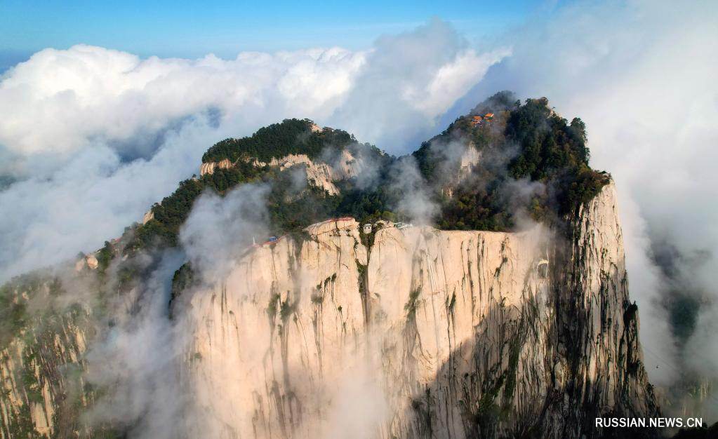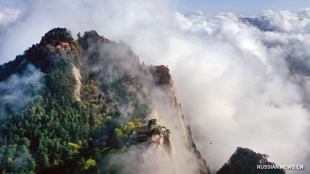 Вэйнань /пров. Шэньси/, 29 апреля /Синьхуа/ -- Дивный пейзаж гор Хуашань /пров. Шэньси, Северо-Западный Китай/ после дождя.