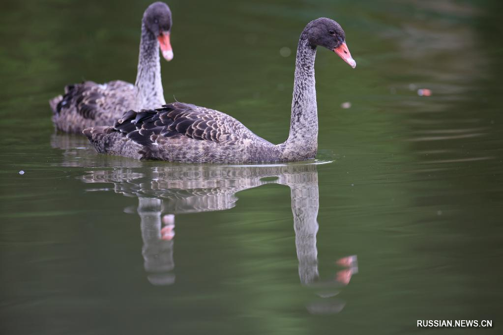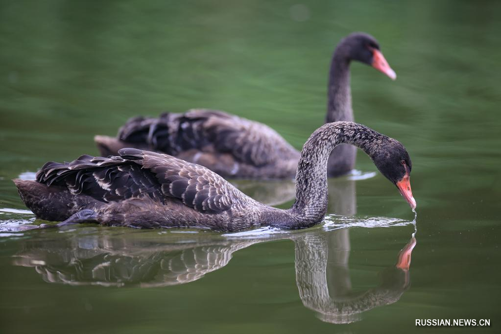 Черные лебеди появились в парке Гуаньшаньху на юго-западе Китая